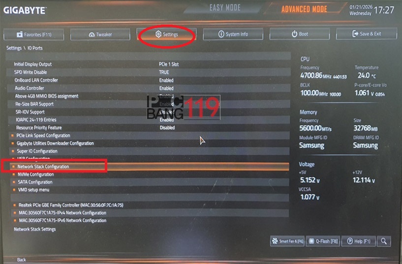 4. 그리고 아래 메뉴 [Network Stack] 선택하여 [Enter] 해 [Enabled]를 선택 해 주세요