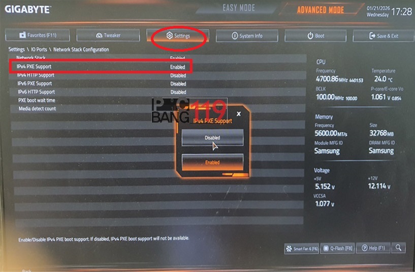 5. 또, 아래 메뉴 [IPv4 PXE Support] 선택하여 [Enter] 해 [Enabled]를 선택 해 주세요