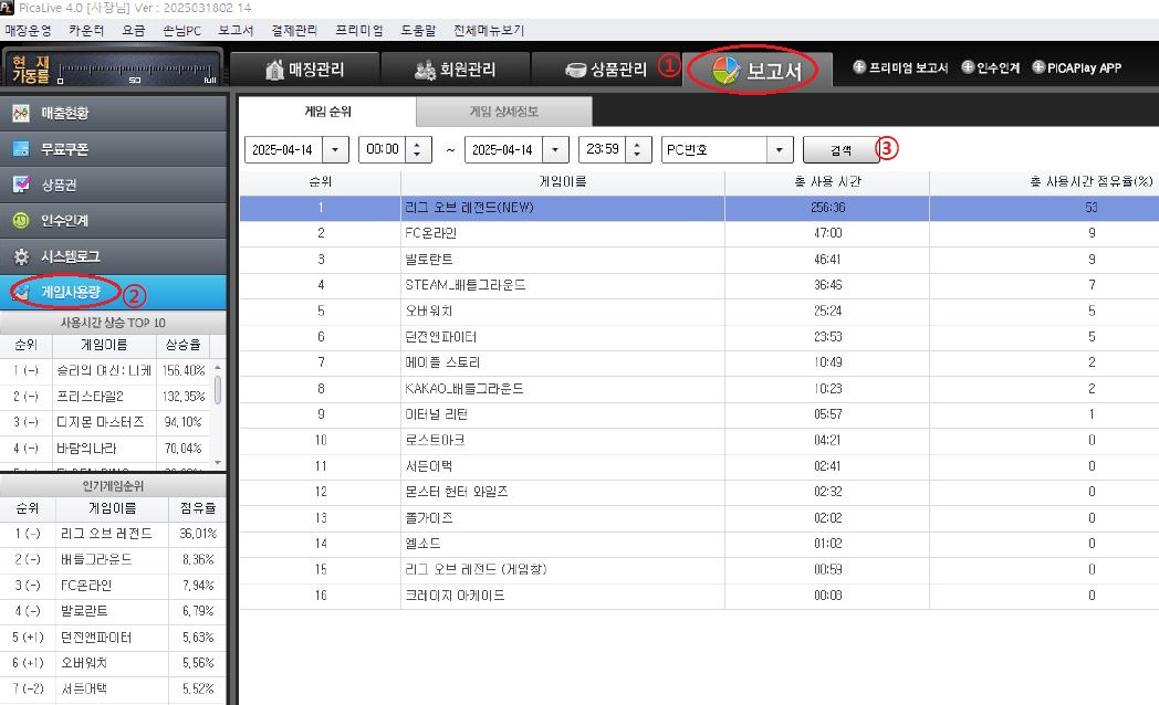 [피카] 게임 통계 확인하기