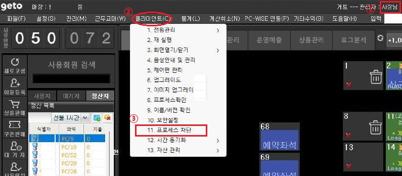 2. 클라이언트 > 프로세스 차단을 실행 해주세요.