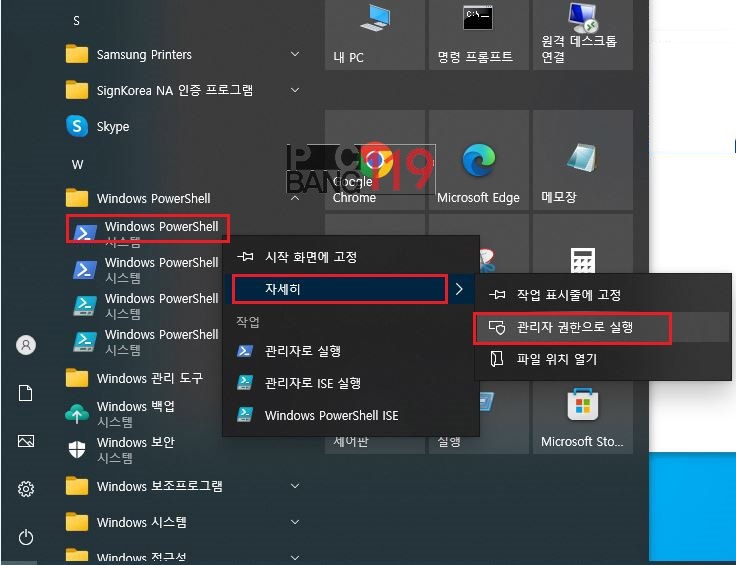 혹시 폴더의 모던 파일 그렇다면 아래와 같이 파워셀를 관리자 권한으로 실행해 주세요.